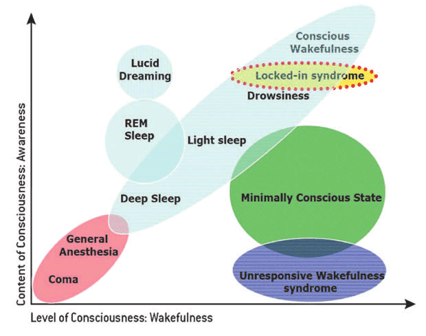 A simpler precedent to the complexity model is this: simply imagining playing tennis produces a detectably different pattern of brain activity to imagining navigating a house. These two kinds of thoughts can therefore be mapped to ‘yes’ and ‘no’, enabling someone with locked-in syndrome to communicate. This dramatically debunks my thought that there was nothing useful to look into here!